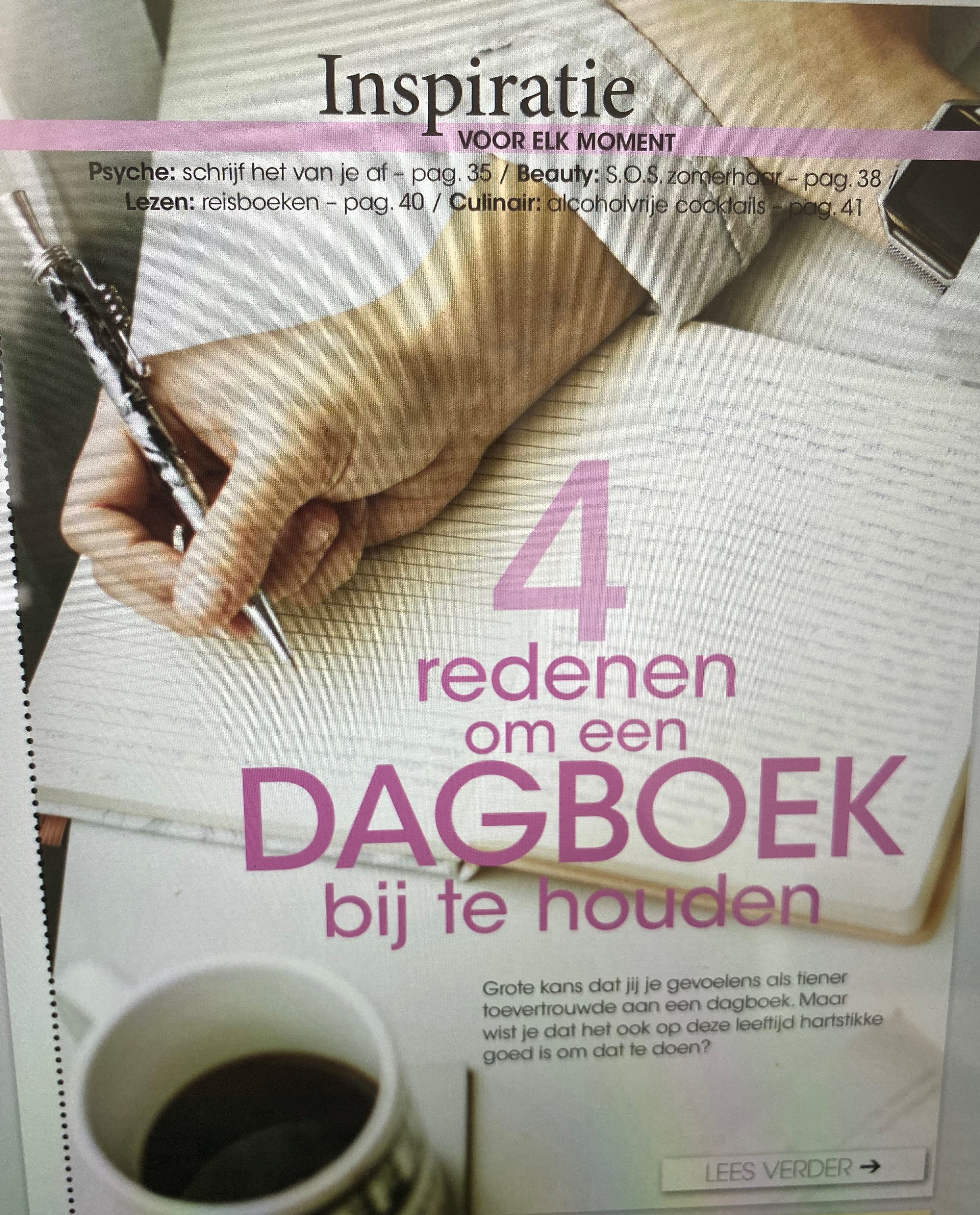 Onlangs ben ik geïnterviewd over het nut van het bijhouden van een dagboek. In het artikel 4 redenen om (weer) te beginnen èn een tip als je niks op papier denkt te krijgen. Het is te lezen in Vriendin editie 31 2021, en hier & hier kan je het ook los lezen.